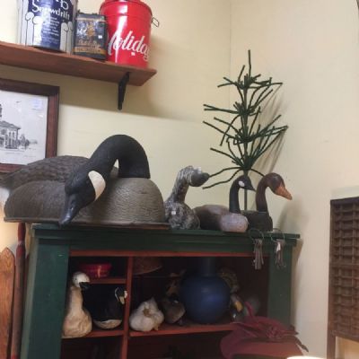 Parking on the street or the lot behind the building. We have been collecting and selling over 25 years! We are small but we carry the usual and unusual. Primitives Fold Art Depression Glass Pyrex Shelley Dinnerware American Fostoria Royal Dalton Hunt Dishes Lustreware Vintage Christmas Ornaments Vintage Costume Jewelry Franciscan Apple and Dessert Rose Rosenthal Sansouci Waterford Navarre Golf Ball Meadow Rose Fostoria Heisey Minuet Hull Ebb Tide Knife Rest Black Americana Head Vases McCoy Roseville Weller Majolica Franciscan Star Burst